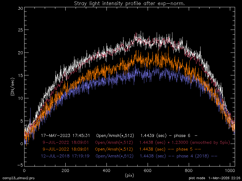 The stray light component included in the Al_mesh filter was increased by the factor of 1.23 (corrected from 1.25 on 1-mar-2026) compared with the corresponding 2021 July data (phase 5). E-limb images started to show new stray light pattern.