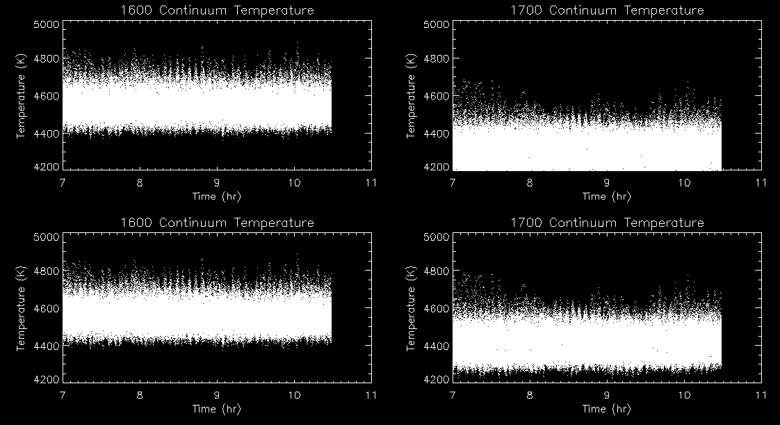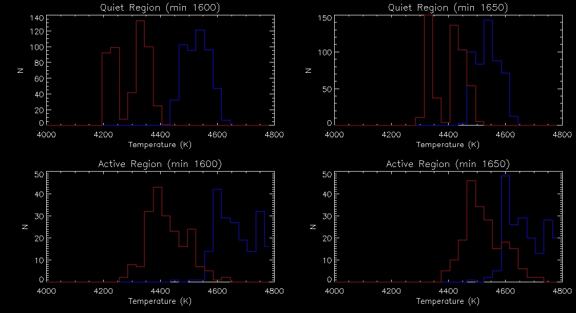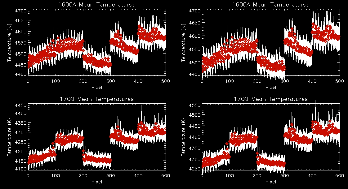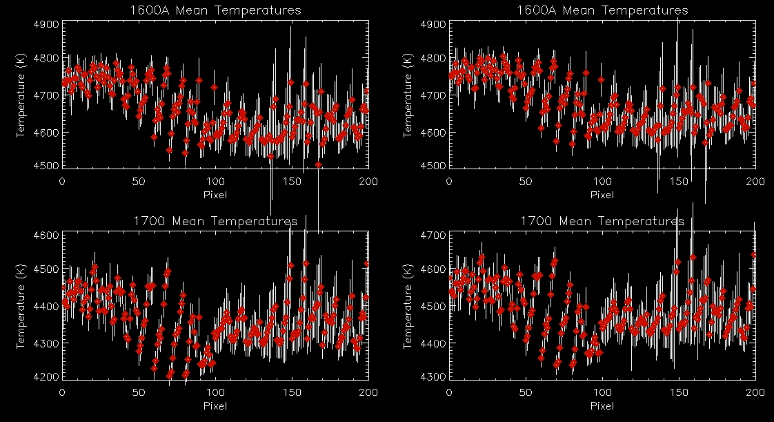 Median temperatures for each pixel, with error bars of 1 standard deviation. Min=1600 on left, 1650 on right Quiet Regions: