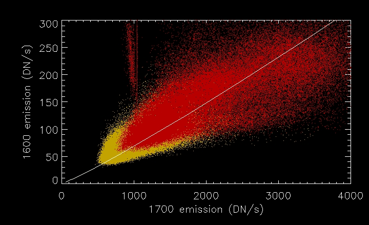 Now looking at the data from the 1700Å and 1600Å data - yellow is