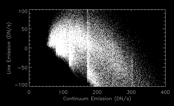 Clearly, something is wrong. There should not be negative line emission, and this emission should not decrease with increased continuous emission (which indicates increased temperature). The most likely reason for this is lines within the 1700Å band that I had assumed to be negligible. So, I will correct for these lines.