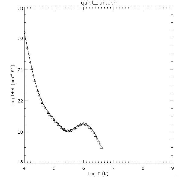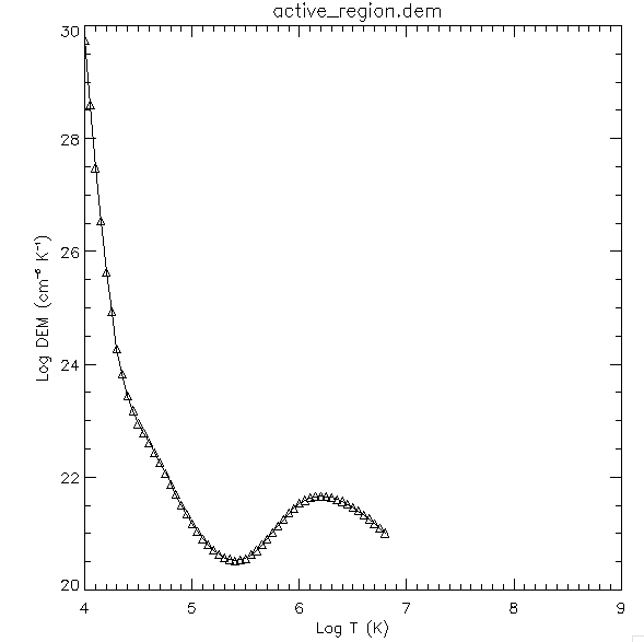 In the active region, the DEM at log(T)=4 (or 10^4 K) is several orders of magnitude larger than the quiet sun.