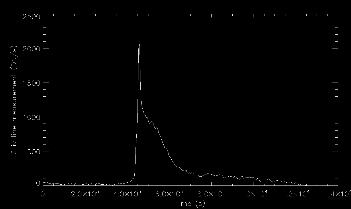 This causes the expected line emission to jump to over 7000 DN/s - but the total recorded emission is only 2-3 thousand