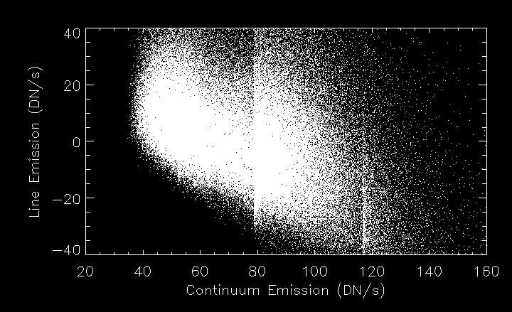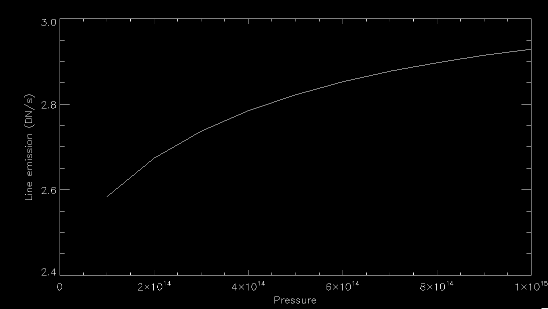 emission (higher ion density). With a pressure of 2e15 erg/cm^3, the program gives a line emission of 0.707 DN/s