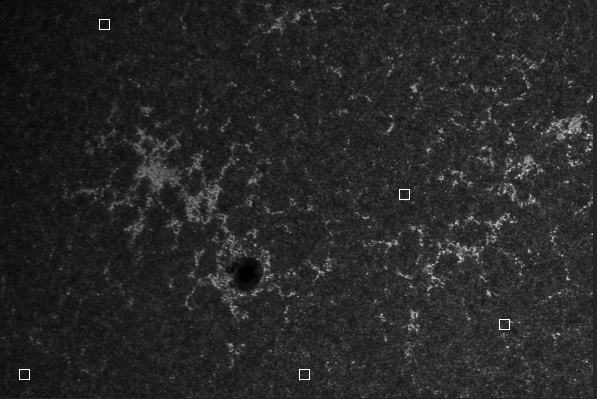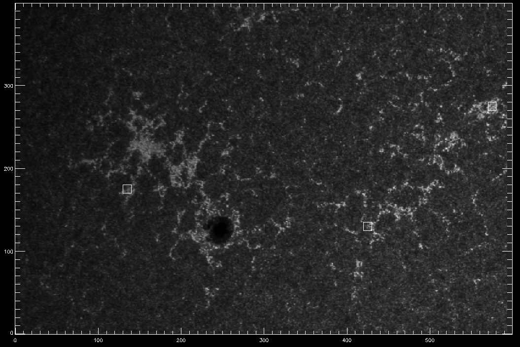 I now turn to the region of the image that are brighter than the background, but do not participate in the flares - plages The regions I analyzed are indicated in the following image: