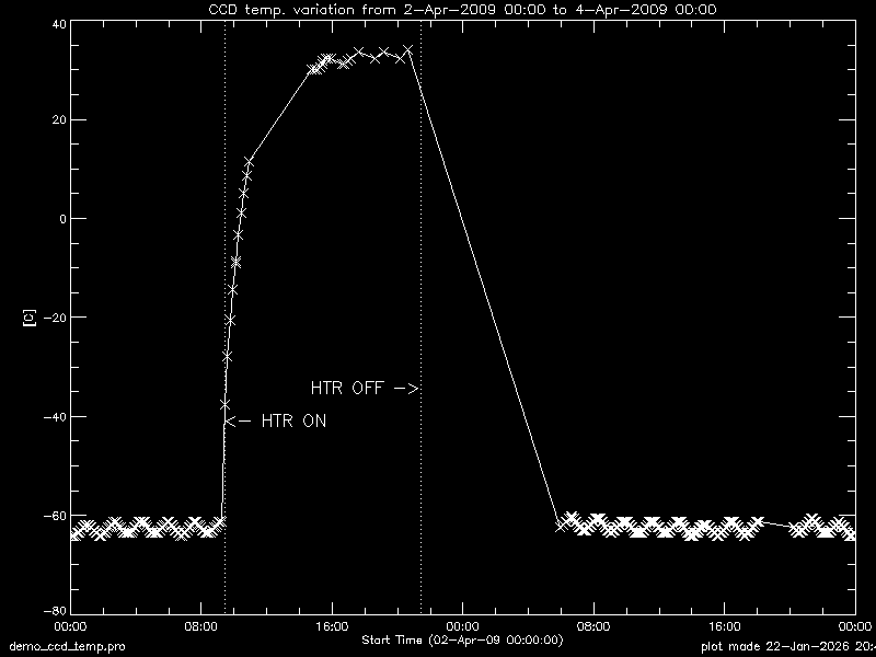 heated from -60C (during observation) to +30C (during bakeout).